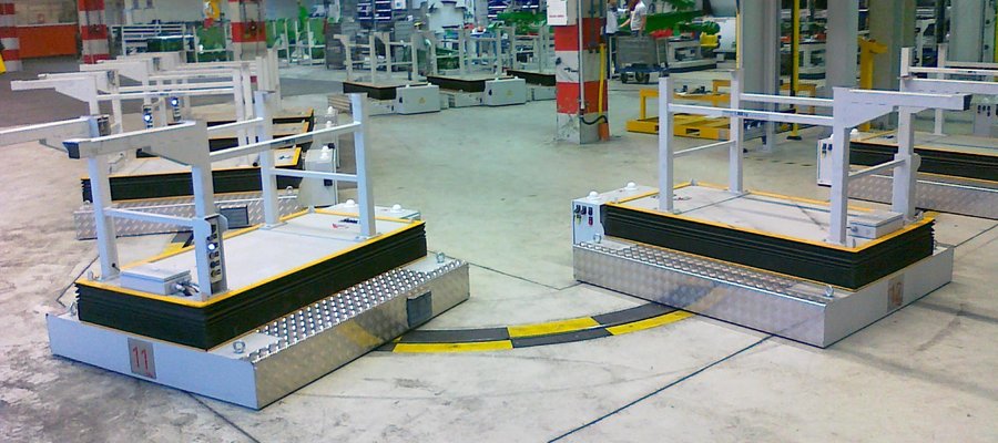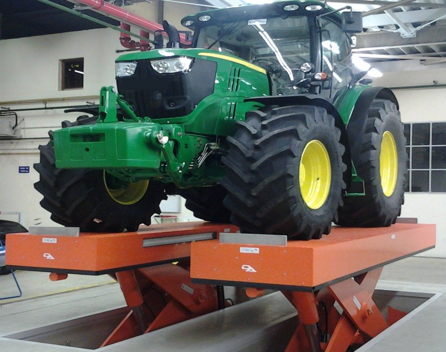 Entwicklung, Konstruktion und Lieferung von einer Montagelinie mit 12 intelligent selbstfahrenden Montagehubwagen für die Aufnahme von Traktorrahmen und die Vormontage der Vorderachse |