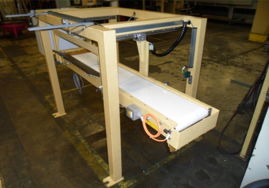 Entwicklung, Konstruktion und Lieferung von einem Förderband zur automatischen Sortierung von Walzkörpern am Auswurf eines Härteofens. Walzkörpertemperatur 180°C, automatische Zustellung bei Chargenwechsel |