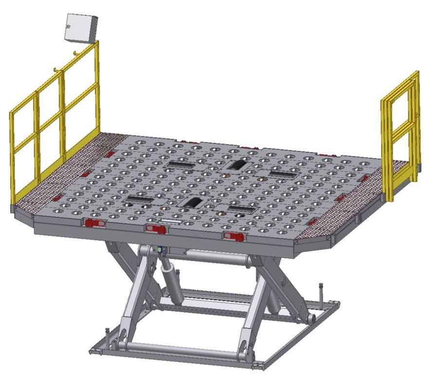 Entwicklung, Konstruktion und Lieferung einer Fahrzeughebebühne mit 15,0t Tragfähigkeit und hydraulischer Synchronisation |