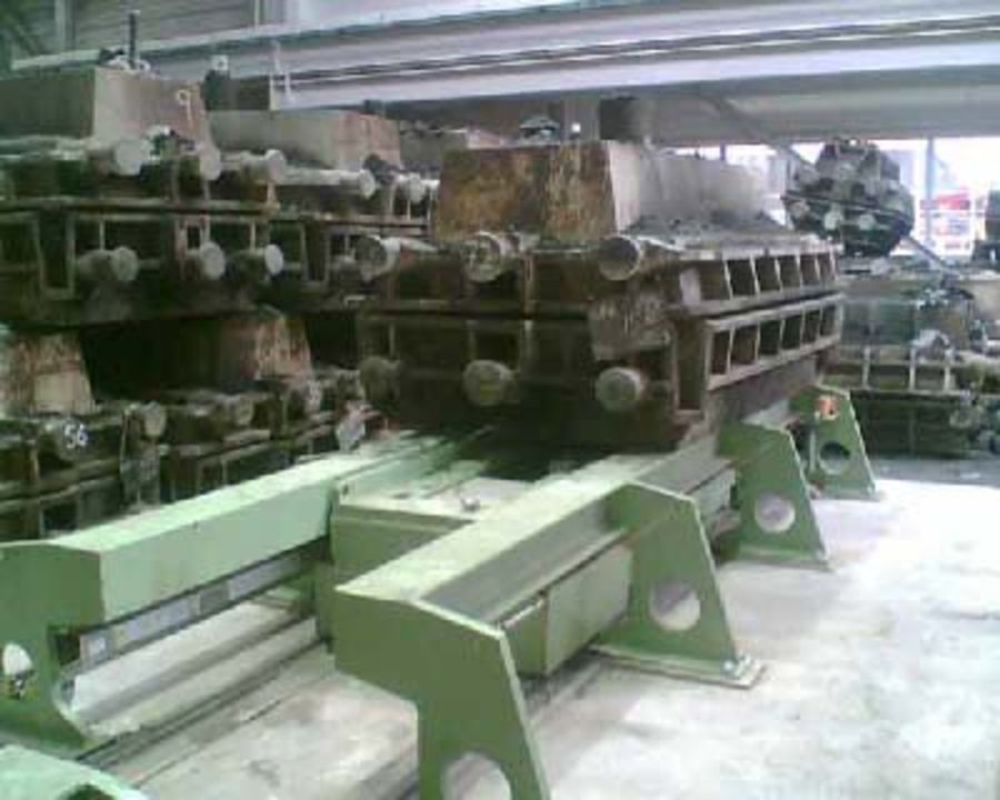 Konstruktion und Lieferung eines Formkastenhubtransportwagens mit 30t Tragfähigkeit mit seitlicher Ablage in einer Eisengießerei. Besonderheit: Schienenkreuzung mit Portalkran |