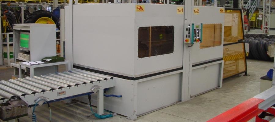 Konstruktion und Lieferung einer automatischen Reifenfüllanlage für Traktorenräder mit zwei getrennten Sicherheitskammern |