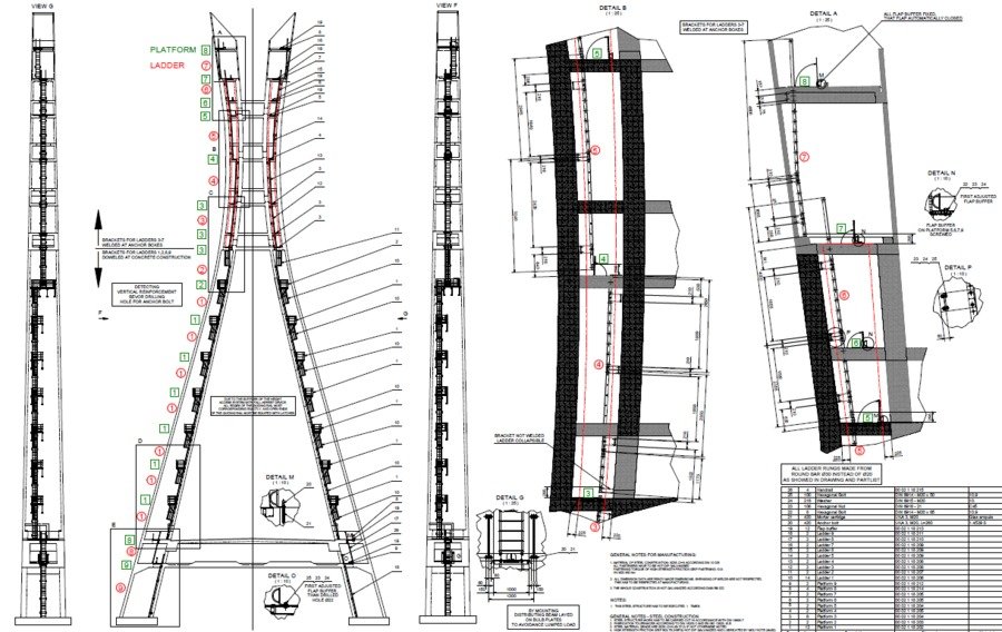 Konstruktion eines Aufstiegsystems für einen 90m hohen Pylon einer Schrägseilbrücke |
